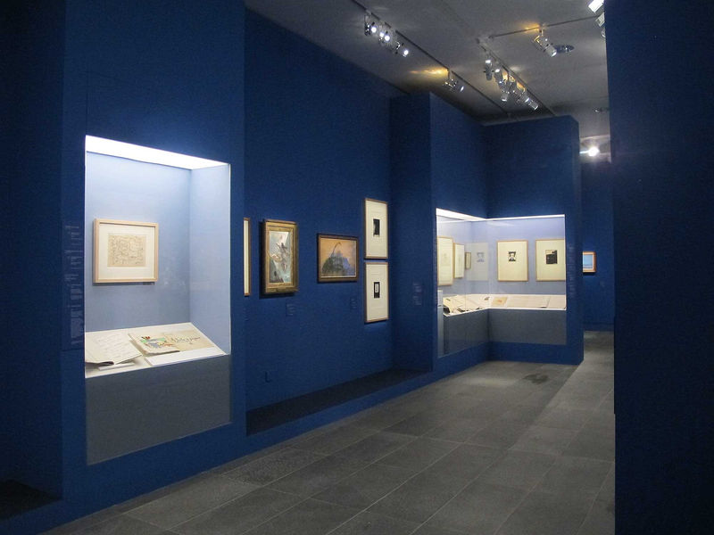 The exhibition design transposes the musical world of Claude Debussy with a large curved platform that blends all together paintings, furniture, and sculptures. Transparent veils open up the space and create visual connections between the different sections.